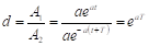 衰减震荡过程曲线上相差一个周期T的两个峰值A1与A2之比为衰减率,即: